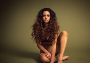 One of Reva’s favorite things to do is model lingerie. The lacy, sensual fabrics against her soft, smooth, naturally tan skin never fails to turn her on. At this shoot, she had to switch bras several times, revealing that with each change the puffy nipples on her big tits got harder and hader. She modeled some panties including a hot thong that really showed her round ass off. Standing up, her long, naturally curly hair whipping around, she shed those panties and walked away with a strut, that sweet ass bouncing as she went then she spun around and struck a pose completely naked, stretching her body out to show how curvy and fit she was and how smooth and tight her fully shaved pussy was. Lingerie modeling always ends up naked modeling when Reva’s involved!