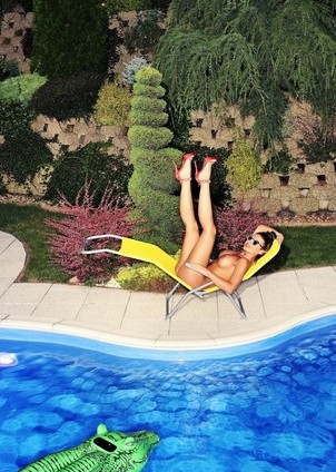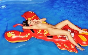 Mariana Pinter is a summer girl. Summer is her favorite season of the year because she loves to do things outside wearing as little as possible. Her friend was throwing a big pool party that had the sexy Playboy Playmate in a great mood as she ran around outside in her bikini. She tried out a few pool floaties and checked out the cool yard before taking her bikini top off, laying down on a bench, and sticking her big tits in the air. The bikini bottoms didn’t last much longer as Mariana got completely naked, climbed onto one of the pool floaties and set sail on the water. Her shaved pussy and curvy body looked amazing as she floated around the pool soaking up some sun. When she was done in the pool the busty babe got into the outdoor shower turning this pool party into one hell of a hot, steamy, naked shower show!
