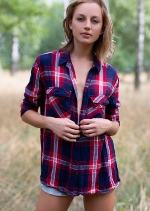 Some of the hottest girls in the world are country girls. When she is out in the woods hiking around and exploring in her boots, jean shorts, and flannel shirt, Playboy Playmate Julia looks like a normal, albeit very pretty, country girl out for a stroll. She stops, unbuttons her shirt to flash her tits and nice abs. With a smile on her beautiful face, she unbuttons her shorts then turns around and eases them off over her incredible ass. Tossing the shirt to the side, Julia is fully naked and has a blast leaning up against some trees, stretching her body out to show just how fit she is and how amazing she looks with no clothes on. This normal country girl turns out to have a sweet, shaved pussy and a very naughty side that causes her to love being naked in public!