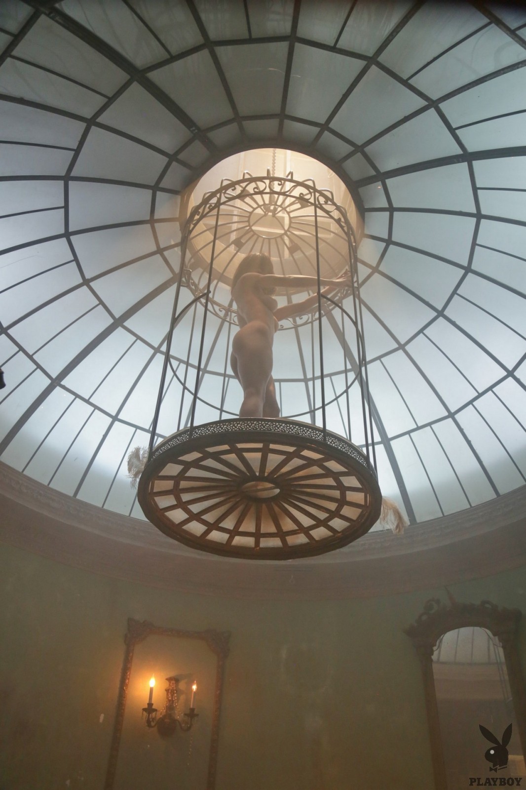 Talk about caged fury! Mia Valentine makes your year when she is lowered through the ceiling in a cage while wearing nothing but a hot bra and panty set. As the music started, the curvy sexy Playboy Playmate moved her body to the beat, arching her back and sticking her perfect ass out. Seductively, she reached back and unhooked her bra, letting her impressive tits out to play then the sexy girl wiggled out of the panties. Like a work of living art, the fully nude model danced and moved around, shaking that cage as she showed off how limber she is and how well she can move her body. This brunette babe is so sexy and seductive she doesn't even have to touch you to send you through the roof with excitement, all she has to do is arch her back or shift her hips.