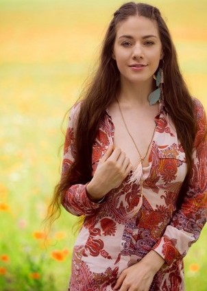 Joy Draiki is so sweet, cute and fun she is like a beam of light shot directly from the sun. The sexy redhead was out getting some air walking through a field of flowers when the inspiration of the moment hit, and the adorable Playboy Bunny took her pretty, flowered dress off. She walked around the field, arms out and flowers brushing against her fine, fit body in just her underwear but even they didn’t stay on very long. She’s a little old school and keeps her pussy hairy. The feel of the flowers and grass against her soft skin really turned Joy on and made that hairy pussy a little bit wet. With a sly smile on her gorgeous face, Joy laid down in the meadow, her perky tits in the air, and ran her hands down her body as she just enjoyed the peace and quiet.