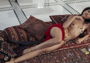 The amazing mansion Playboy booked for Lorena Medina’s photo shoot was so incredible the brunette hottie couldn’t wait to run around and check it out. The shoot started with her wearing a sexy, skimpy gold bikini, but it didn’t stay on very long. As she walked through the front door and down the main corridor, she took the top off and set her small, perky tits free then she wiggled her way out of the bottoms as she made her way over to a bed where she lay face down so her tight ass was in the air. Walking around the house, posing on the floor, in the windows, and all over the furniture had this stunner’s shaved pussy dripping wet. Coming into the main room, she laid down on the floor so she could pose with the gorgeous floor tiles. Her perfect, naked body sprawled out against the design of the floor looked like the sexiest piece of art you have ever seen.