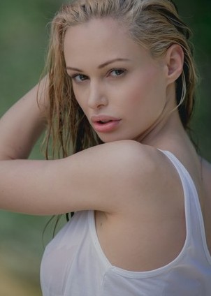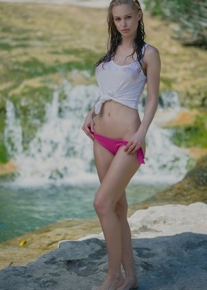 Miss Zita is the kind of Playboy Bunny that looks sophisticated, smart, and high class. While she is all of those things, she also loves just hiking and getting out into the country where she can let her golden blonde hair down and just have some fun. During a hike, she came across a very cool little waterfall with a deep swimming area. The sexy model didn’t hesitate, she quickly stripped down to her panties and went for a swim. As she climbed out of the water she realized she should have taken them off as well, so she stripped naked and hung her clothes up to dry. As her clothes dripped dry, she spread out on some rocks and relaxed, enjoying the warm weather and the sound of the water while completely naked.