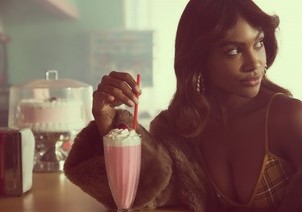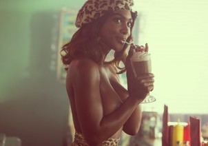 Stunning, ebony babe Jordan Emanuel had the entire diner to herself and decided to make the most of it. Just walking around place was fun, but as she started stripping her clothes off then enjoyed a milkshake in her underwear, the Playboy Bunny felt herself starting to get turned on. She took her bra off, letting her nice knockers free then she slid the panties off and bent over the counter, sticking out her round ass, reaching back, and spanking it. The nipples on her perky tits are dark, the color of chocolate, and hard s she climbs up onto the counter and moves around, that ripe rump, fit body, and great tits looking absolutely flawless. With a smile, she sat back down, the cool vinyl of the see crisp against her shaved pussy, and continued to drink the shake, thinking about using the cherry on top to tease her nipples.